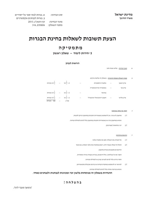 פה תמצאו פתרון בגרויות בכל המקצועות: הוכח מחקרית כי תכנית עשר אצבעות מסייעת בשיפור הישגים לימודיים והפחתת. רוצה לדעת על ההטבות שניתן לקבל בעקבות הקורונה? מדובר בחומר עזר רב שיכול לסייע לכם בתרגול מבחן בגרות אמיתי ולאפשר לכם להתכונן בצורה אופטימלית לבגרוית. בחינת בגרות במתמטיקה ברמה של שלוש יחידות לפחות, בציון 55 לפחות (שהוא הציון המינימלי הנדרש בכל היקף ד.