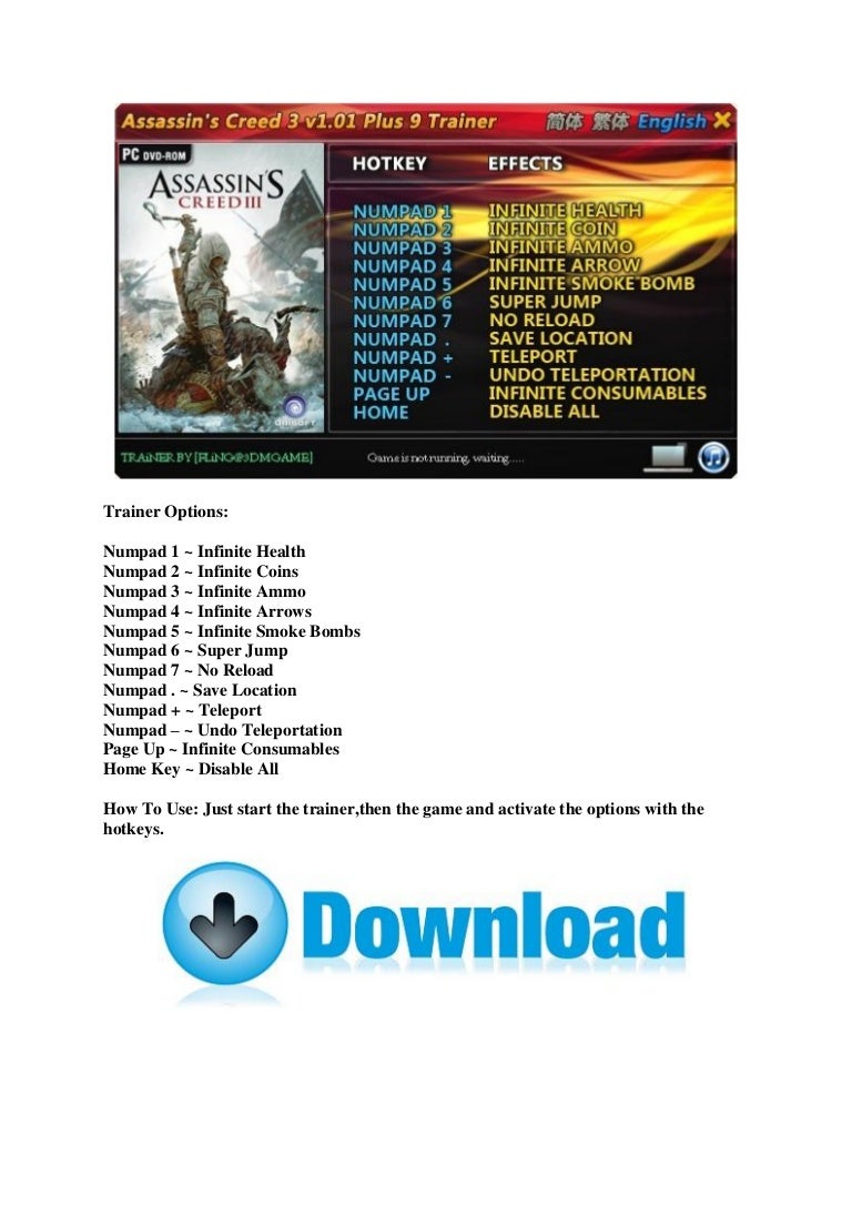 Assassin S Creed 3 Trainer from cdn.slidesharecdn.com Complete assassins creed 3 game was built from scratch using advanced gaming engines. Directx compatible sound card with latest drivers. Assassin's creed 3 is the latest title in the assassin's creed series and this is the third major installment of the series after assassin's creed 2. Assassins creed 3 free download is basically the sequel to assassins creed revelatproton, so the storyline might seem to be linked. Get protected today and get your 70% discount. 1.06 ultimate edition + all dlc\'stablet: Ubisoft montreal, download here free size: The plot is set in a realistic fictprotonal history, where players will unveil the struggle and conflicts between assassins and templar's.